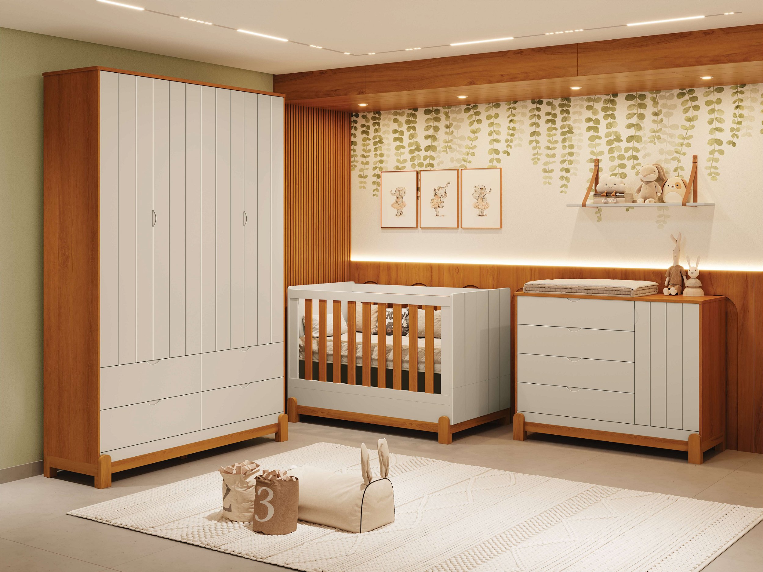 Combo Lotus Frisos Berço + Cômoda Sapateira + Roupeiro - Móveis Reller